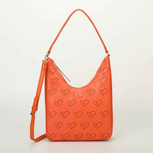 borsa a spalla con cuori traforati - mimì muà - arancio