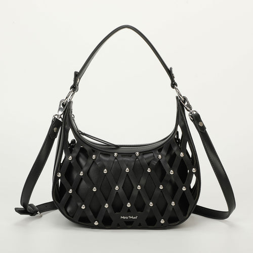 borsa a spalla effetto rete con borchie - mimì muà - nero