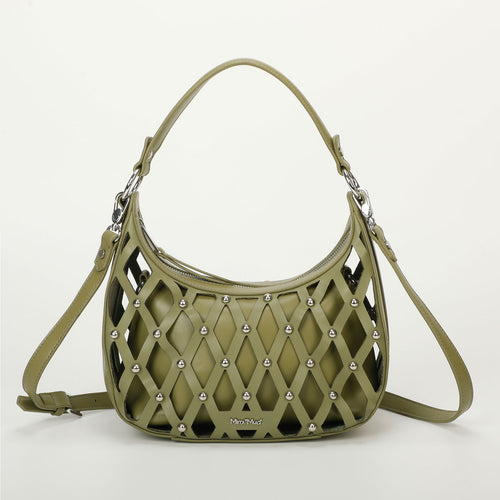 borsa a spalla effetto rete con borchie - mimì muà - verde militare