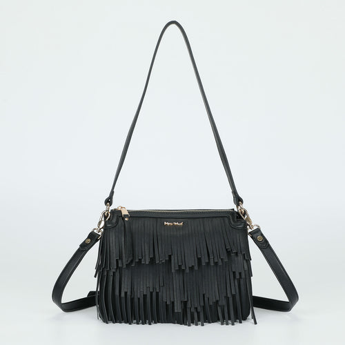 borsa a tracolla con effetto ventaglio - mimì muà - nero