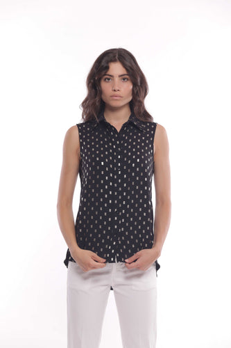 camicia smanicata con dettagli dorati - mimì muà - nero