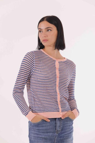 cardigan traforato a righe - mimì muà - pesca denim