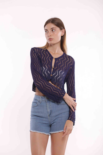 cardigan corto con trama a zig zag - mimì muà - blu