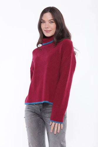 maglia a collo alto over con bordi a contrasto - mimì muà - bordeaux blu ottanio