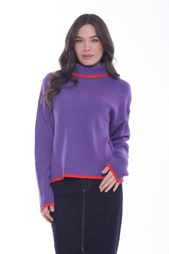 maglia a collo alto over con bordi a contrasto - mimì muà - arancio viola