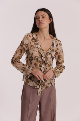 blusa con rouches fantasia leopardata - mimì muà - panna militare