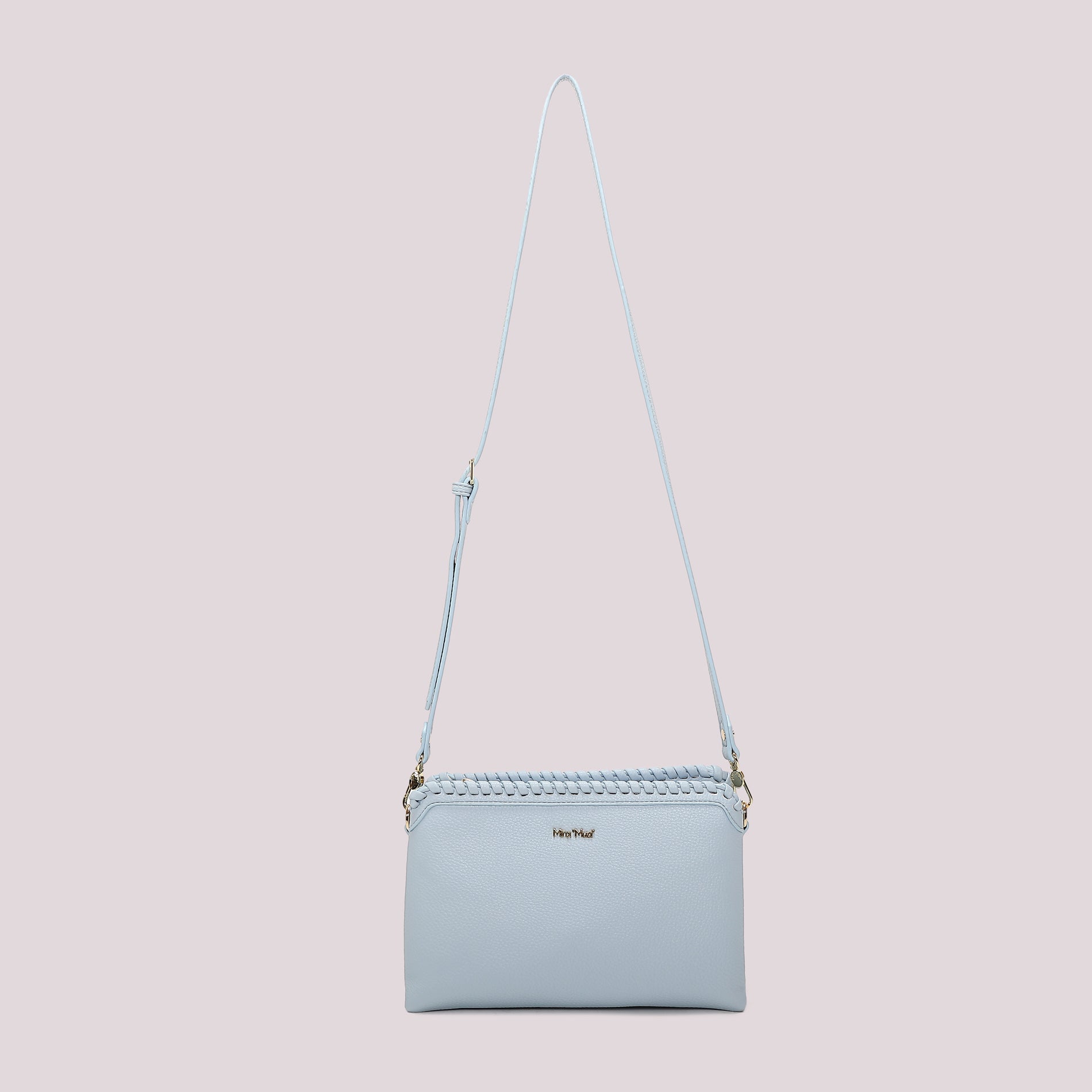 borsa a tracolla con bordo intrecciato - mimì muà - celeste - j201464