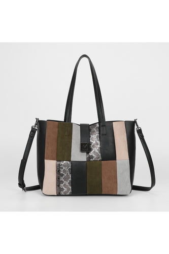 borsa a spalla patchwork verticali - mimì muà - nero