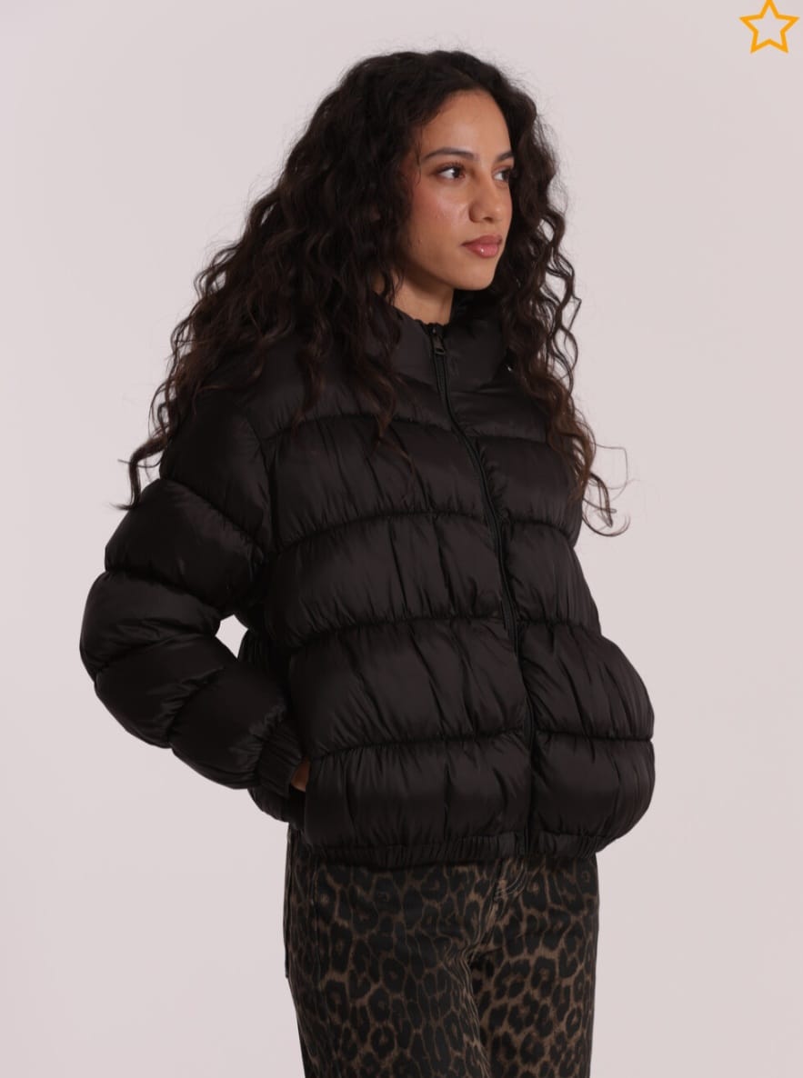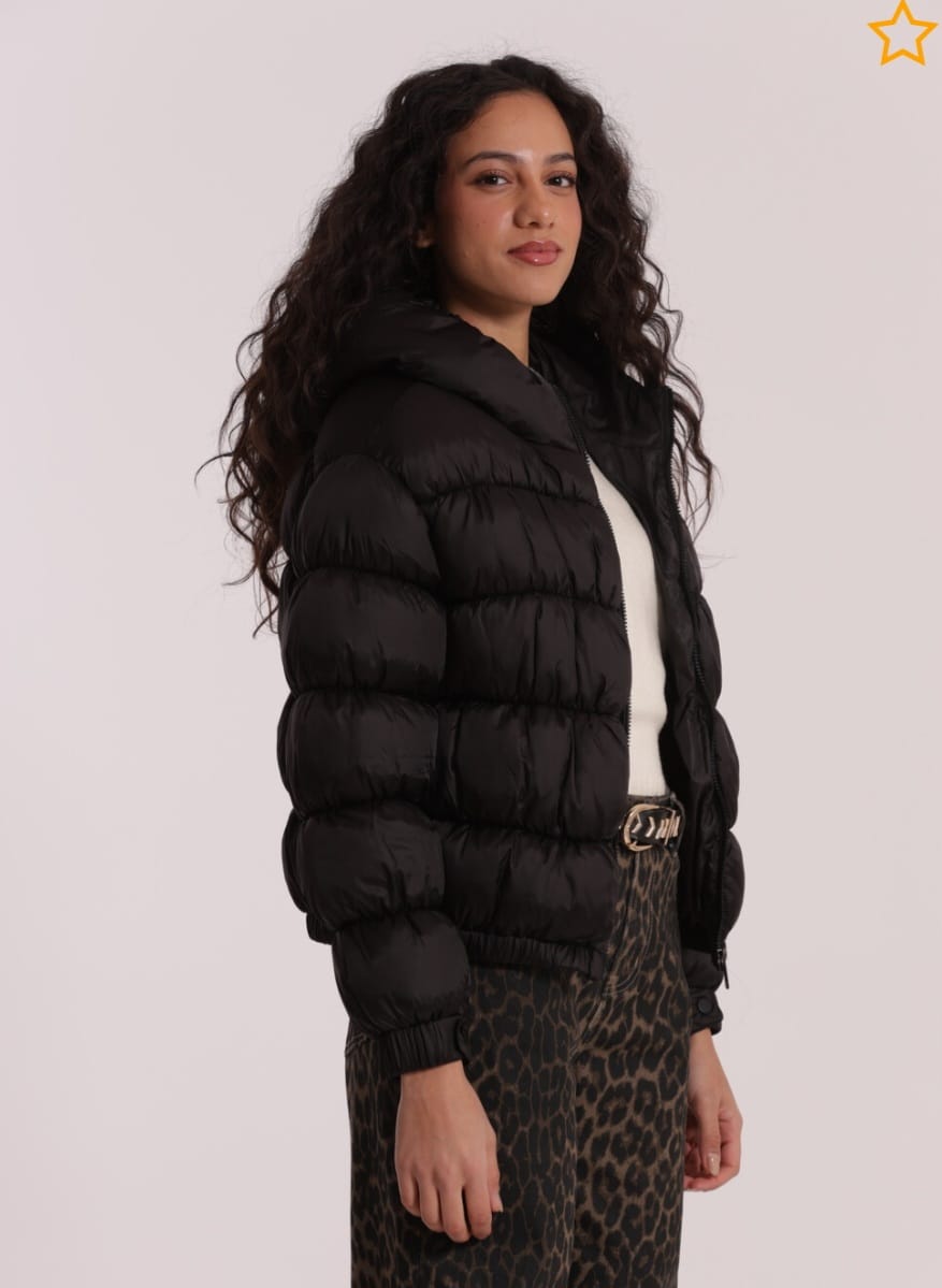 piumino corto bomber con capuccio - mimì muà - nero - 6568