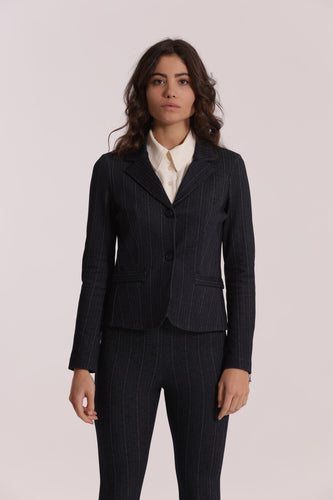 giacca corta in punto milano effetto jeans - mimì muà - blu