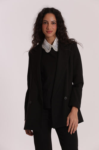 giacca lunga doppio petto in polyviscosa - mimì muà - nero