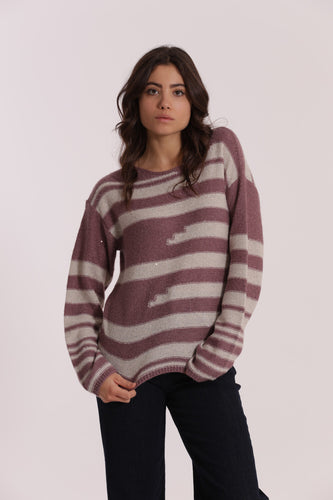 maglia a righe e paillettes - mimì muà - malva bianco