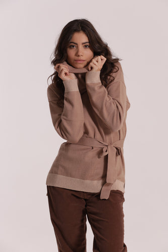 maglia bicolor con dettaglio cintura - mimì muà - cammello beige