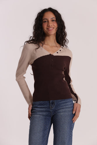 maglia bicolor scollo a v con dettaglio bottoni - mimì muà - beige marrone
